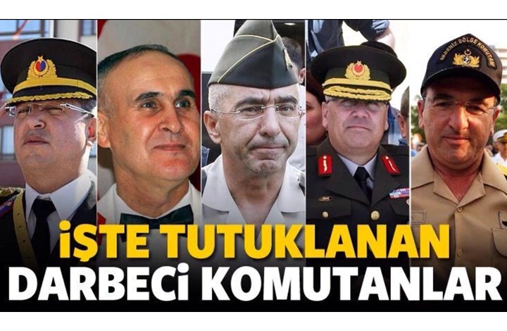وأظهرت الصور أن أعلى رتبة بين القادة الذي تورطوا في الانقلاب كانت برتبة لواء، فيما تعددت جهات انتسابهم بين القوات البحرية والبرية والجوية.