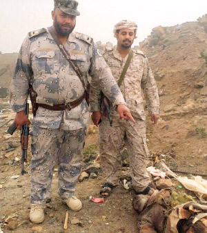 رافق مندوب الصحيفة اللواء الغامدي أثناء جولته على الشريط الحدودي، وعند الاقتراب من الشريط الحدودي شاهدنا جزءا من المعارك الطاحنة لردع البقية الباقية من قوات العدو التي كانت لا تزال تحاول المقاومة، حيث أكد الغامدي أن الانقلابيين يحاولون سحب جثث موتاهم، مشيرا إلى أنهم عادة ما يستغلون الظروف الجوية والممطرة أثناء محاولتهم الاقتراب من الحدود السعودية، وهو ما توقعته القوات السعودية، ونصبت كمينا للانقلابيين الذين وقعوا فيه.