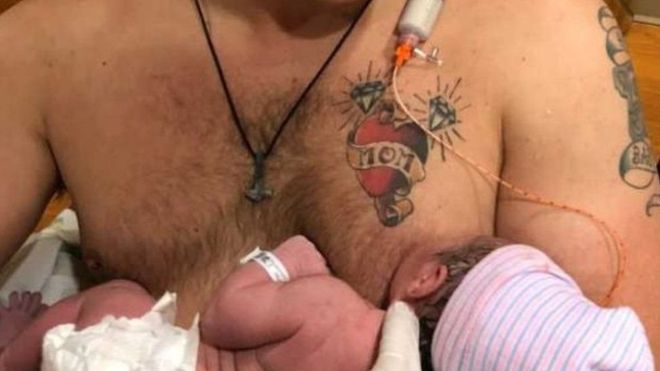 وأشار إلى أن الممرضة سألته إن كان يرغب في أن يضم الطفلة إلى صدره وكأنها في وضع الرضاعة الطبيعية.