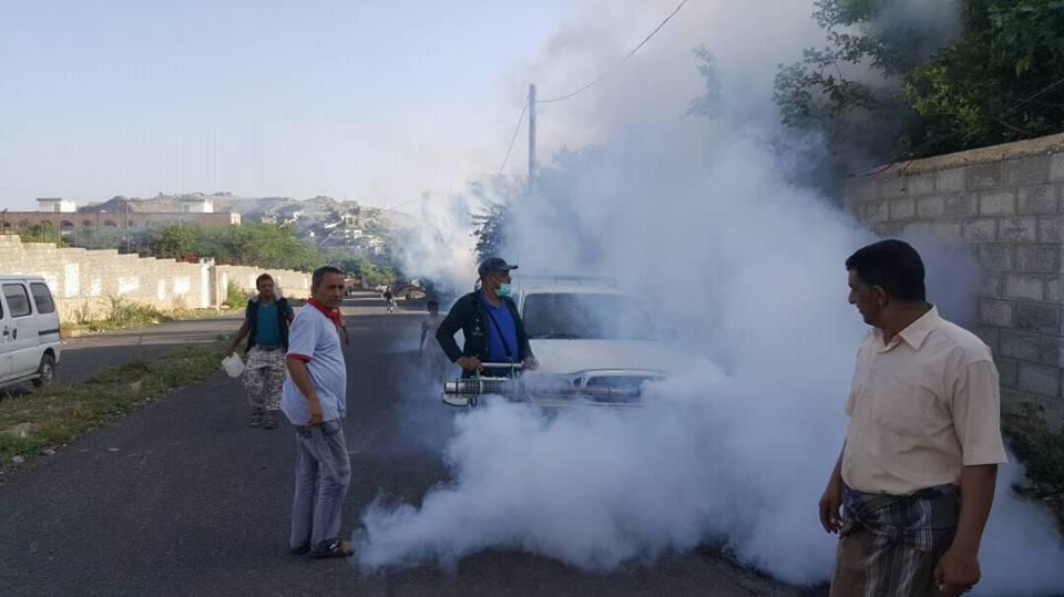 وأكد مدير مكتب الصحة في تعز، عمل السلطات في تدشين المرحلة الثانية من خطة الرش الضبابي في جميع الأحياء والمناطق الموبوءة، لافتاً إلى أن عملية الرش تكافح 25% من نواقل حمى الضنك (البعوض)، ويظل الخطر قائما بسبب تكاثر المستنقعات وغيرها.